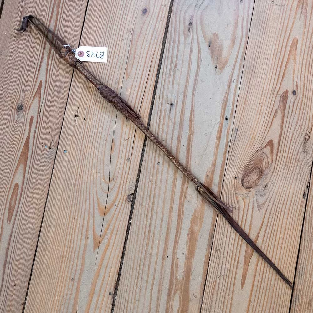 28″ braided rawhide quirt with tassel accents, wrist strap and leather popper.
