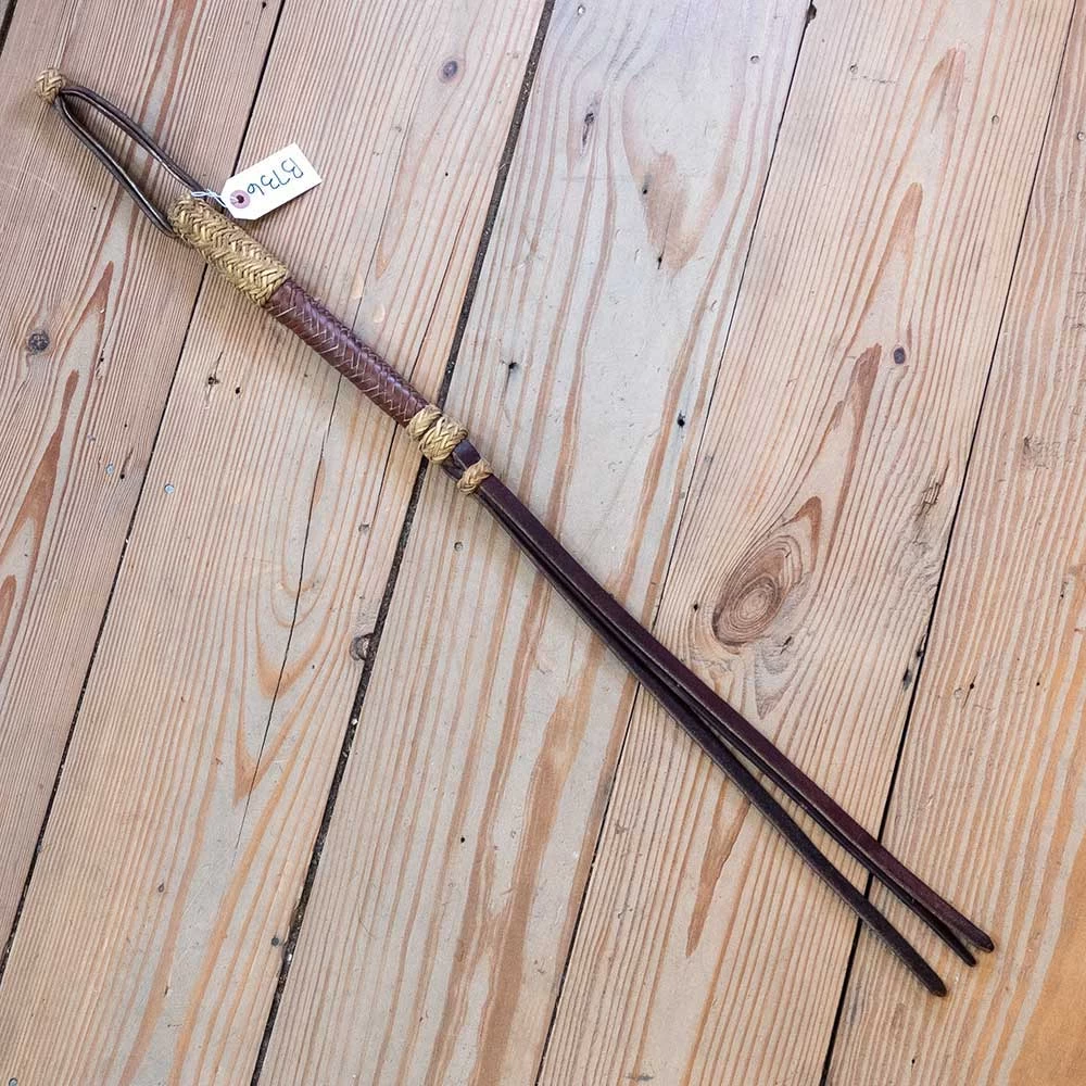 30″ braided rawhide quirt with sturdy wrist strap and multiple poppers.
