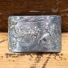 34″ braided rawhide quirt in a dark color with wrist strap and multiple leather poppers.