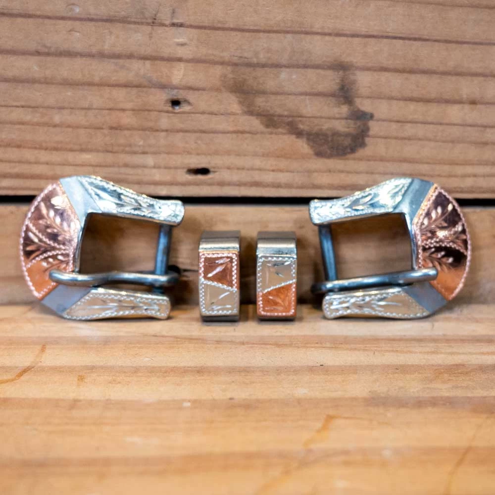 Copper and gold mounted 3/4″ Josh Owney buckles.