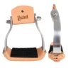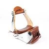 The aluminum barrel racer stirrup has a 3″ neck and 2-1/8″ leather tread.