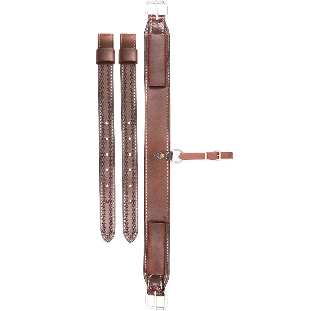 Flank Cinch with two billets, diamond stamped to match the Cashel Trail Saddle. Chocolate skirting leather.