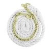 High-quality halter made of flat braided UV resistant, color fast material. It won’t stretch, stiffen, or become brittle. Durable and strong, yet soft and lightweight. 8′ lead included.