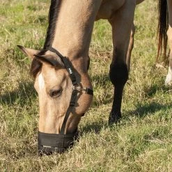 Horses can enjoy the pasture, drink freely, and get exercise without overeating. Adjustable design fits over the poll and under the chin. Never leave a grazing muzzle on for extended periods of time without consulting your veterinarian.