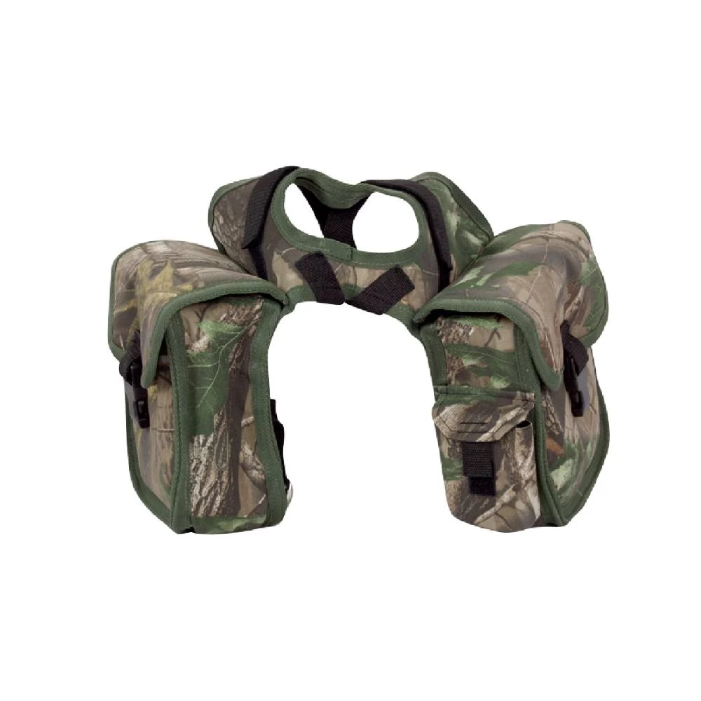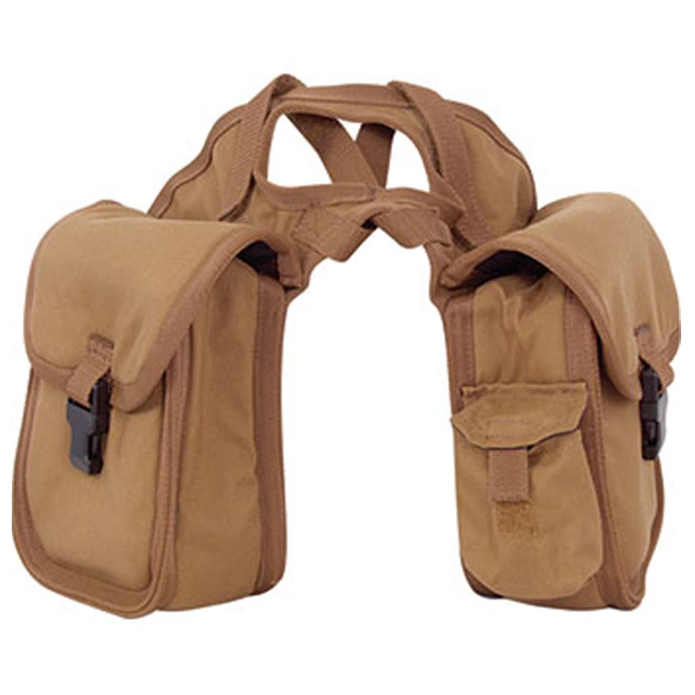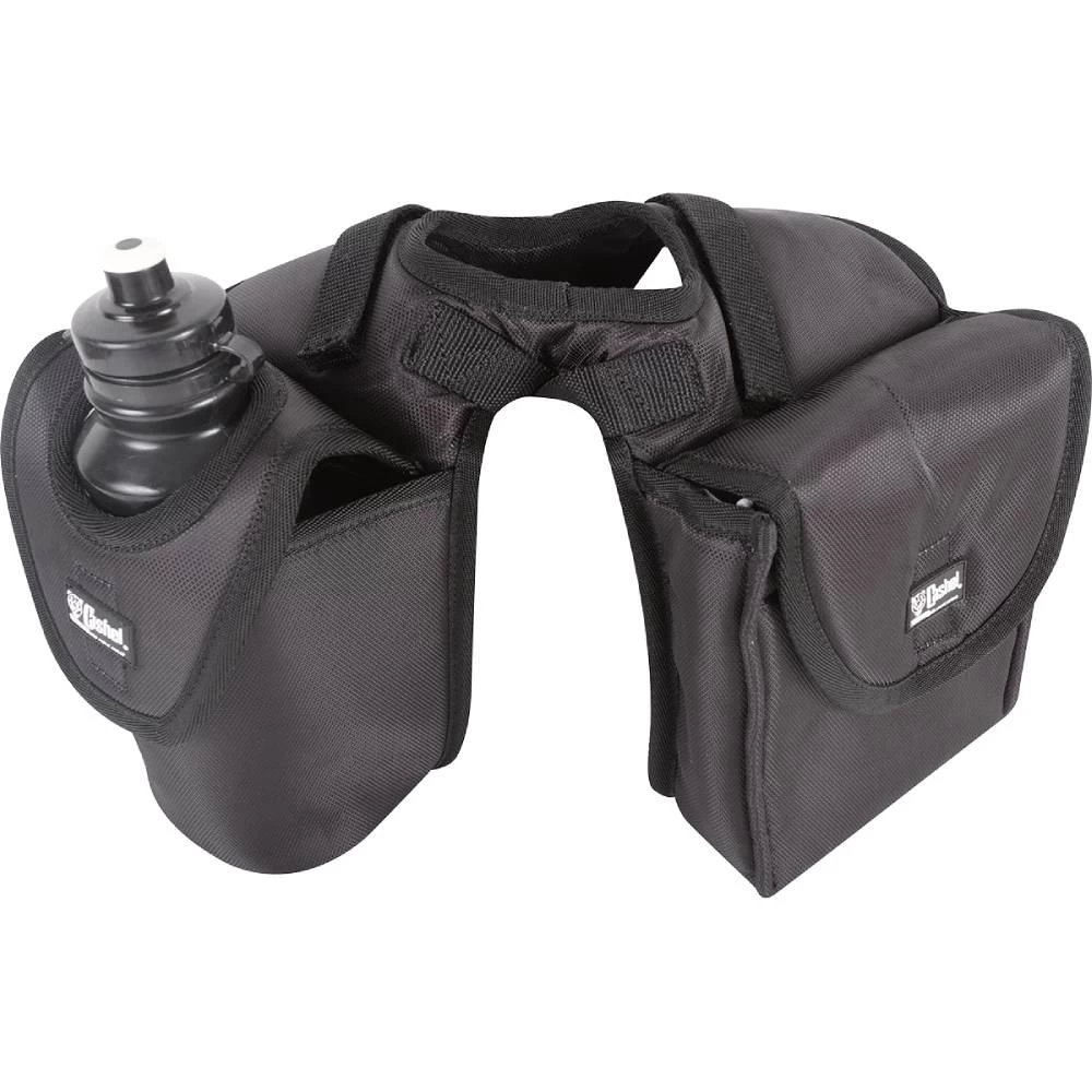 Features a large horn opening with pommel straps, adjustable tie downs and heavy duty buckles for security. Large pockets are padded for comfort, with camera/Cell phone holder and plenty of mesh pockets to keep the trail clean.