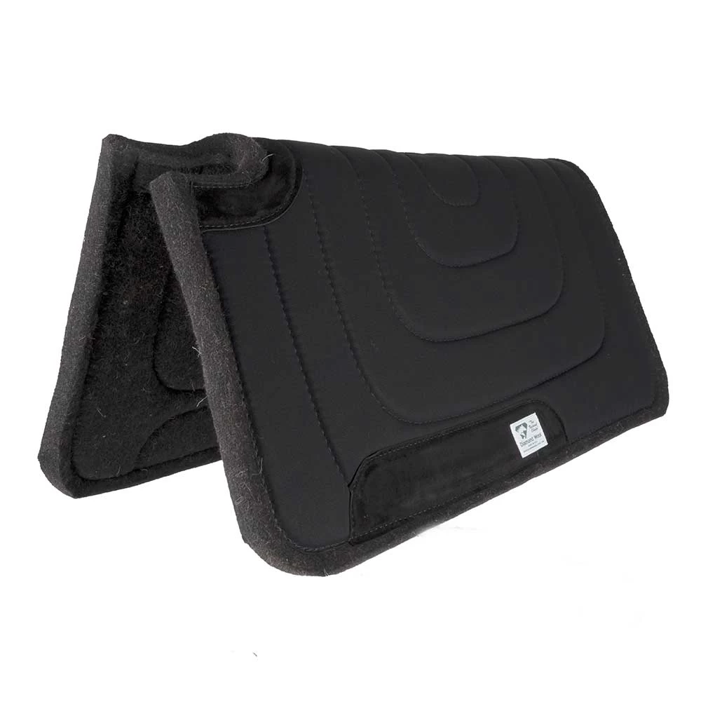 The best all around work/trail pad. “The Rancher” is made from ranch tough 1″ Wool felt with a closely quilted cotton canvas duck and suede wear leathers.