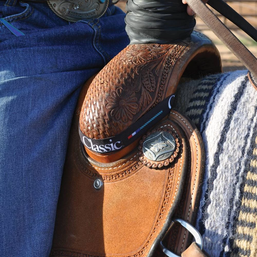 - Buckles under the saddle’s swell to provide a quick and safe method of securing ropes to the saddle.