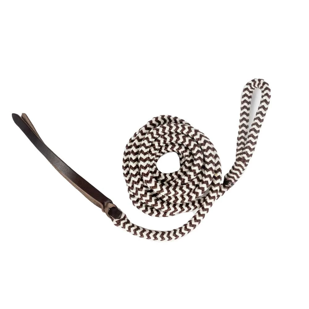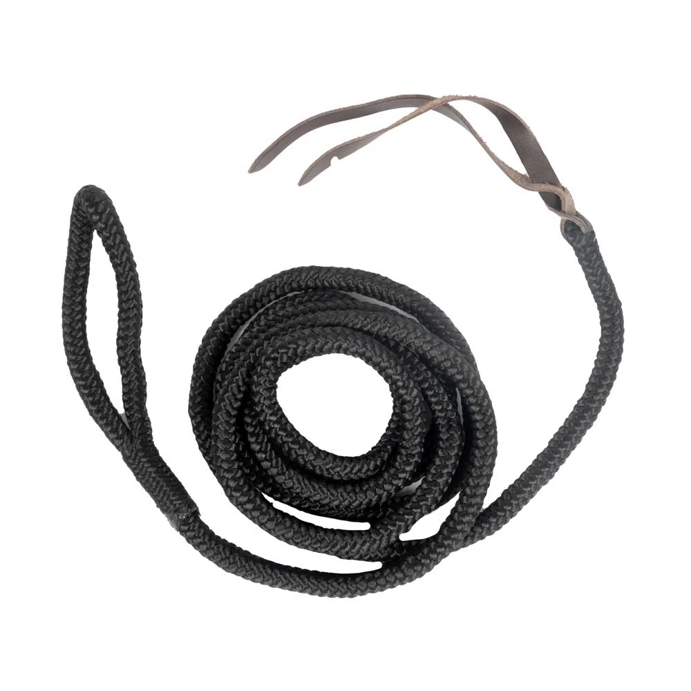 5/8″ x 9′ Poly lead rope features a no hardware eye slide. Easy to attach the lead rope with a leather popper.