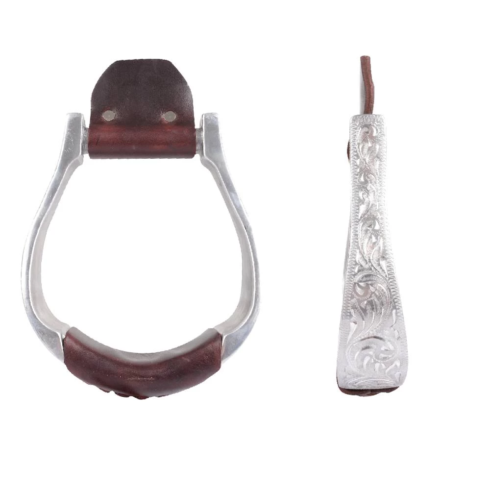 Martin Saddlery hand engraved aluminum stirrups and leather tread.
