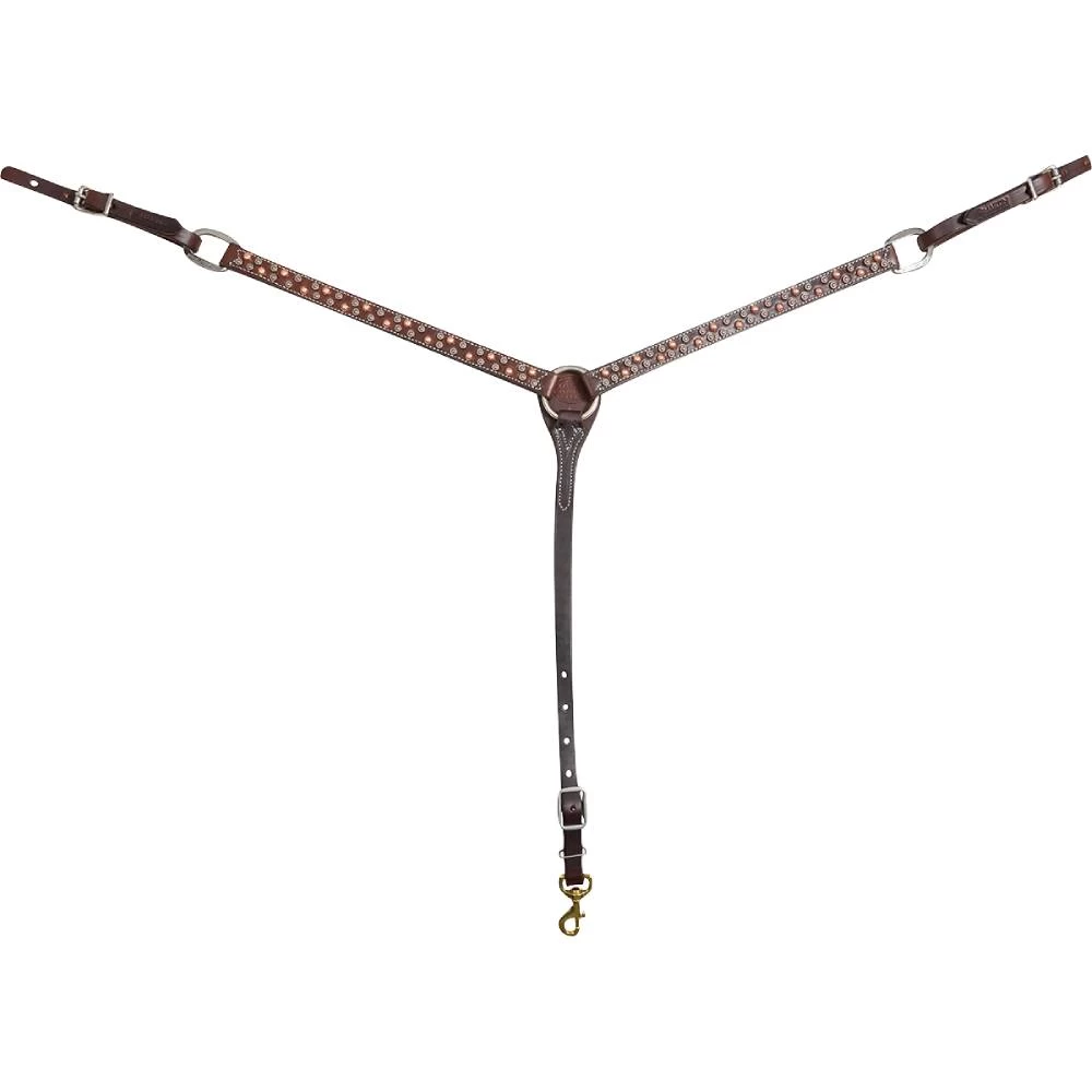 Chocolate skirting leather with copper parachute dots and antiqued dots.