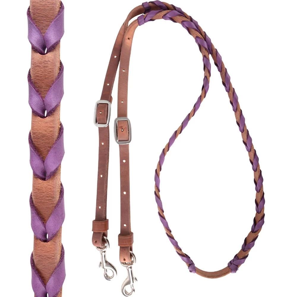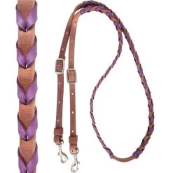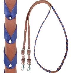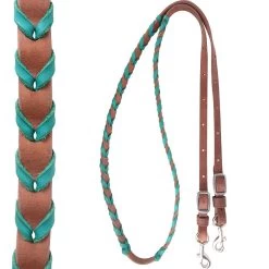 Colored lace harness roping rein with double buckles and snaps, available in 3/4″ and 5/8.”