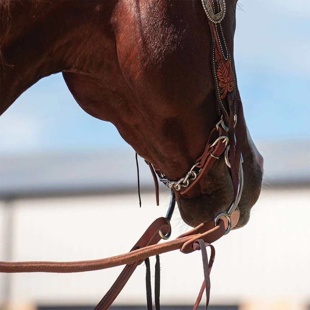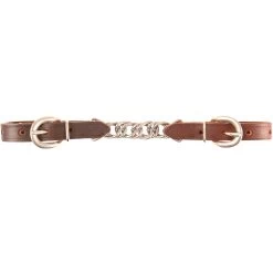 Chain curb strap made with latigo leather and stainless steel chain.