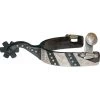 Classic Antique Finish, Oval Cup, Stainless Steel Floral Design. Cut Inlays, Chap Guard, 3/4″ Wide Band, 1 3/4″ Shank Length, 1″ Rowell