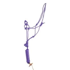 Thin, soft braided poly rope with four hand tied knots across the nose and a 12′ lead makes this the perfect rope training halter. The knots add pressure when needed to correct behavior. This is a great tool to use when working the horse from the ground. Made from a continuous piece of braided poly rope, rot resistant and no hardware.