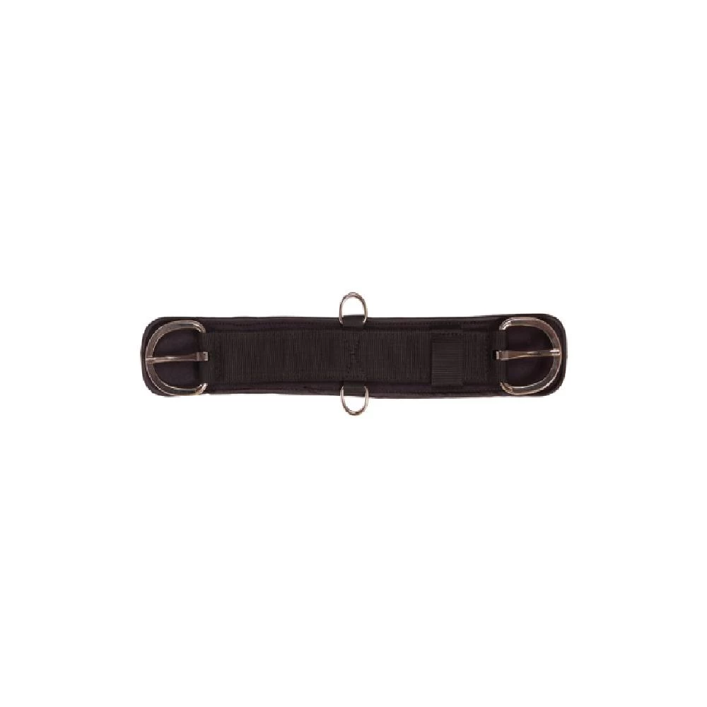 Straight black nylon cinch with PVC backing and nickel plated hardware.