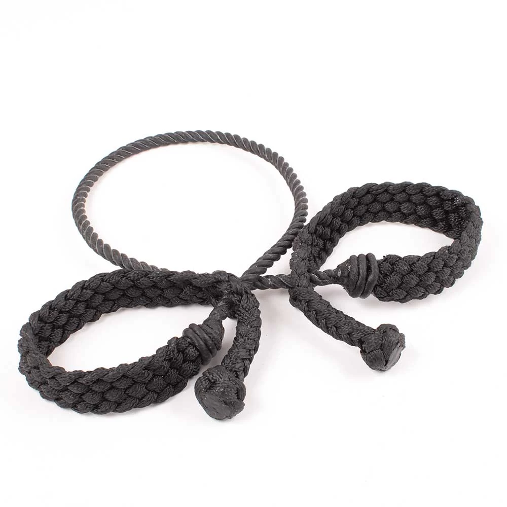 This hobble is made from 4-strand twisted lariat rope and has a light weight wax finish for less stretch and longevity. The flat braided mule tape hobble is soft yet strong and durable. Available in black and white.