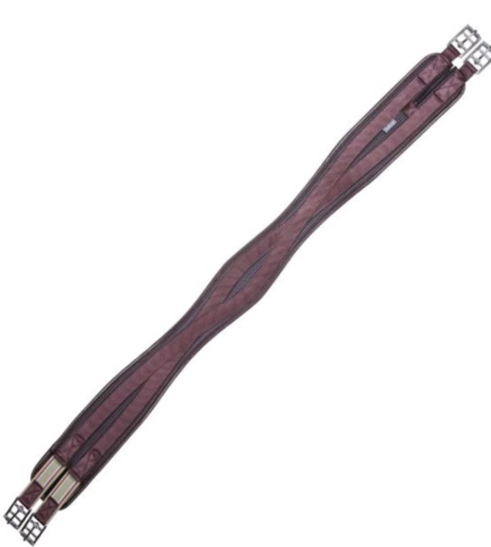 The award winning Airform girth is horse and user-friendly. Cushioned and textured for air flow, it stays incredibly soft no matter how much use it gets.Can be sponged clean in seconds.Hypo-allergenic. Made with stainless steel roller buckles to extend the life of the girth straps.Dressage style has keepers that hold billets neatly in place. Also available in an All-purpose style.