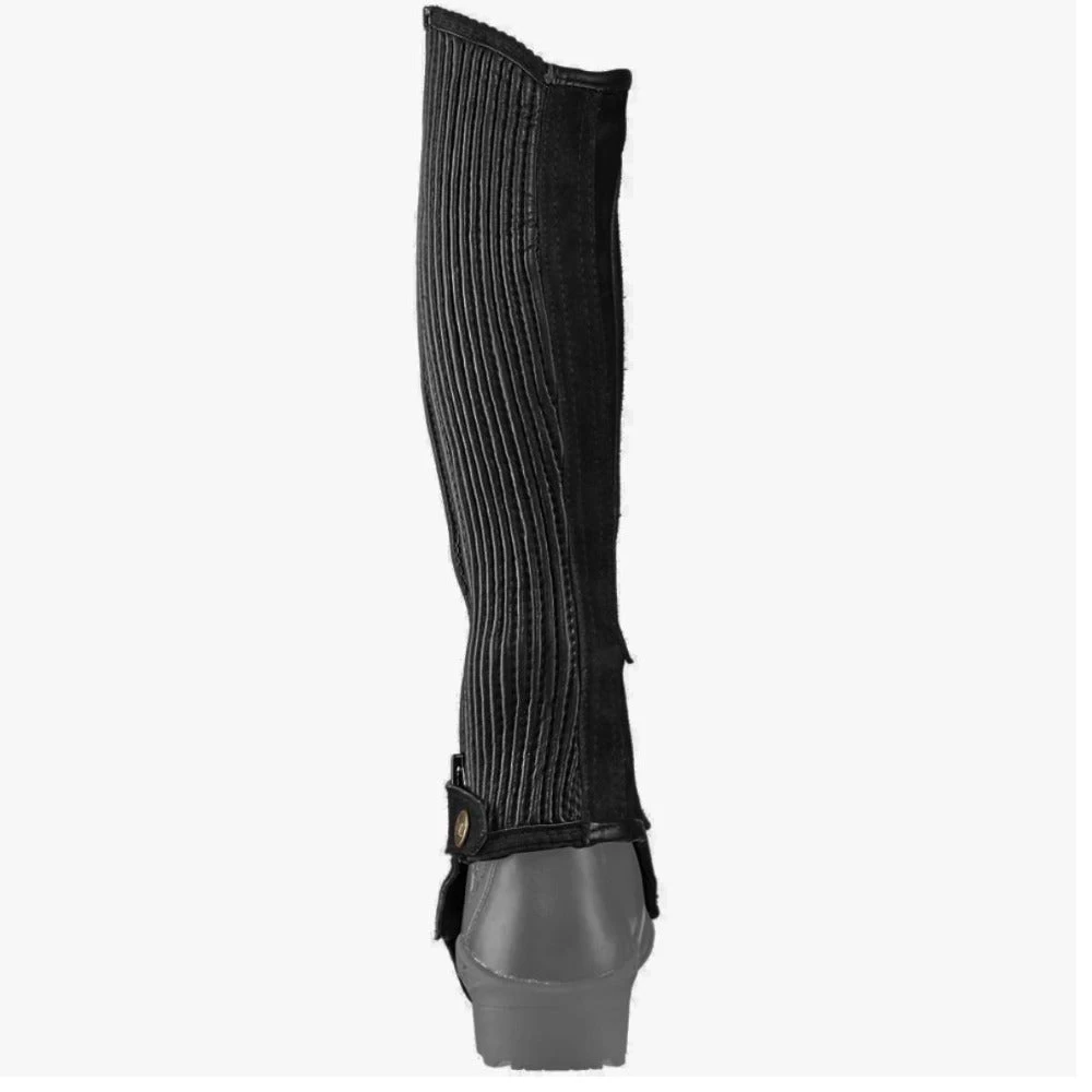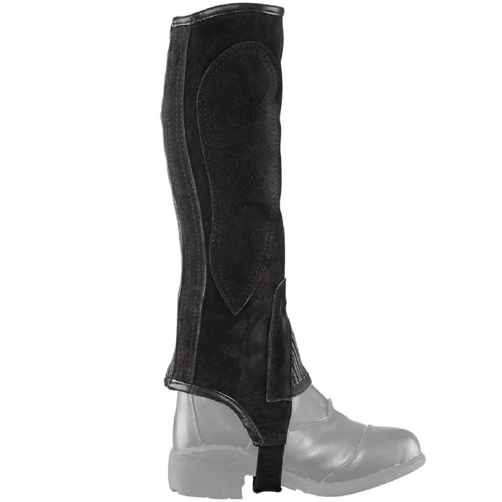 - Suede leather half chaps with ribbed stretch panels for a closer fit. Features genuine YKK® dirt-resistant zippers.