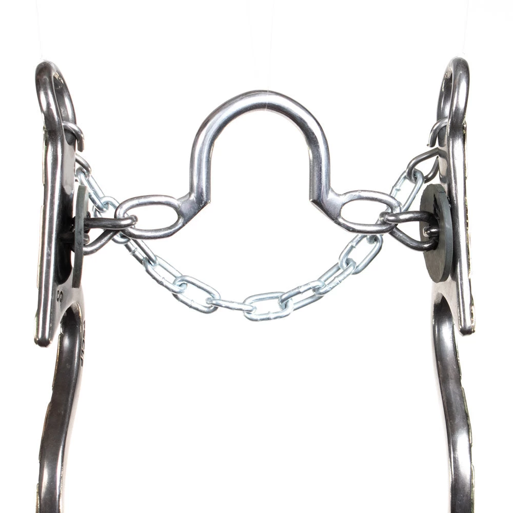 Patrick Smith chain high port bit and chain curb. Longer shank with engraved silver plates on cheeks.