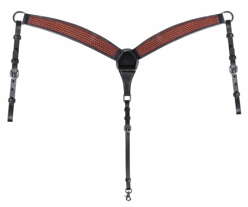 This versatile collection will be at home in almost every discipline. Hand tooled chestnut brown with a black border.