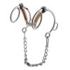 The three piece smooth dogbone with a copper roller mouthpiece is comfortable as it lies across the tongue. The smooth bars offer a softer feel. Copper roller provides entertainment for a busy horse and promotes salivation.