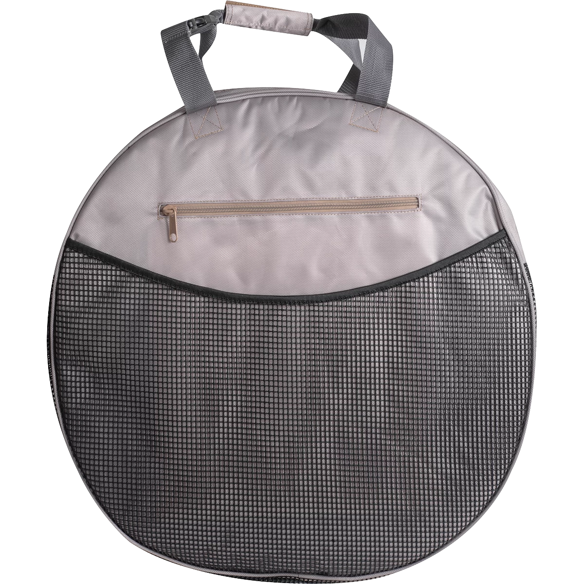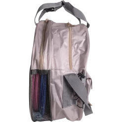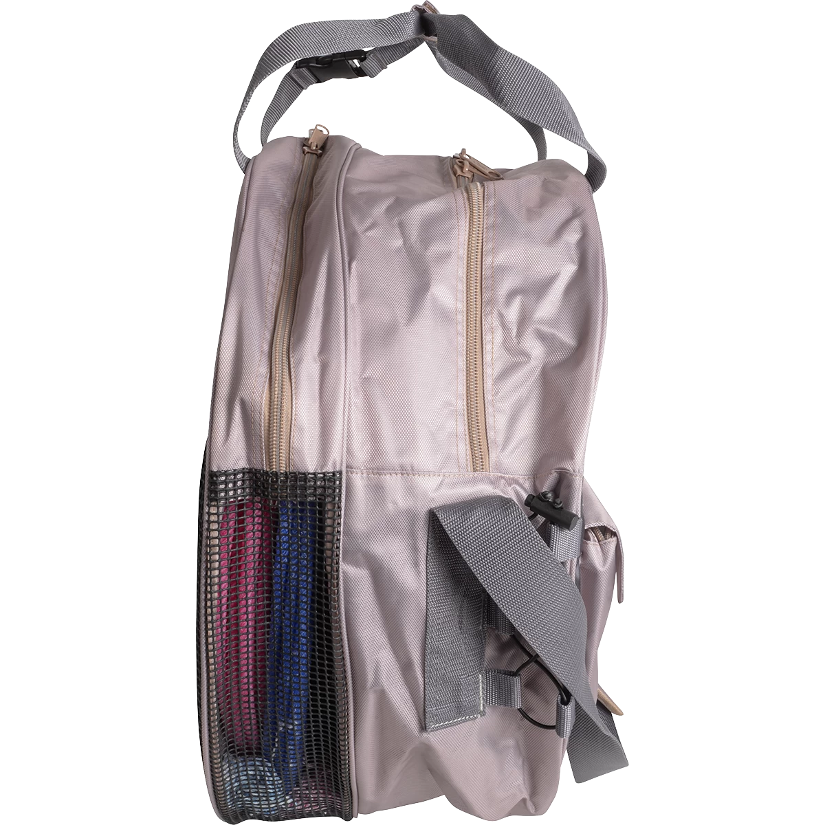 - Two main padded compartments keep ropes tidy, one with a mesh bottom to allow dirt to escape. Mesh pocket behind holds dirty ropes, boots, ect. More pockets for ample storage, and straps that buckle for easy attachment to the fence.