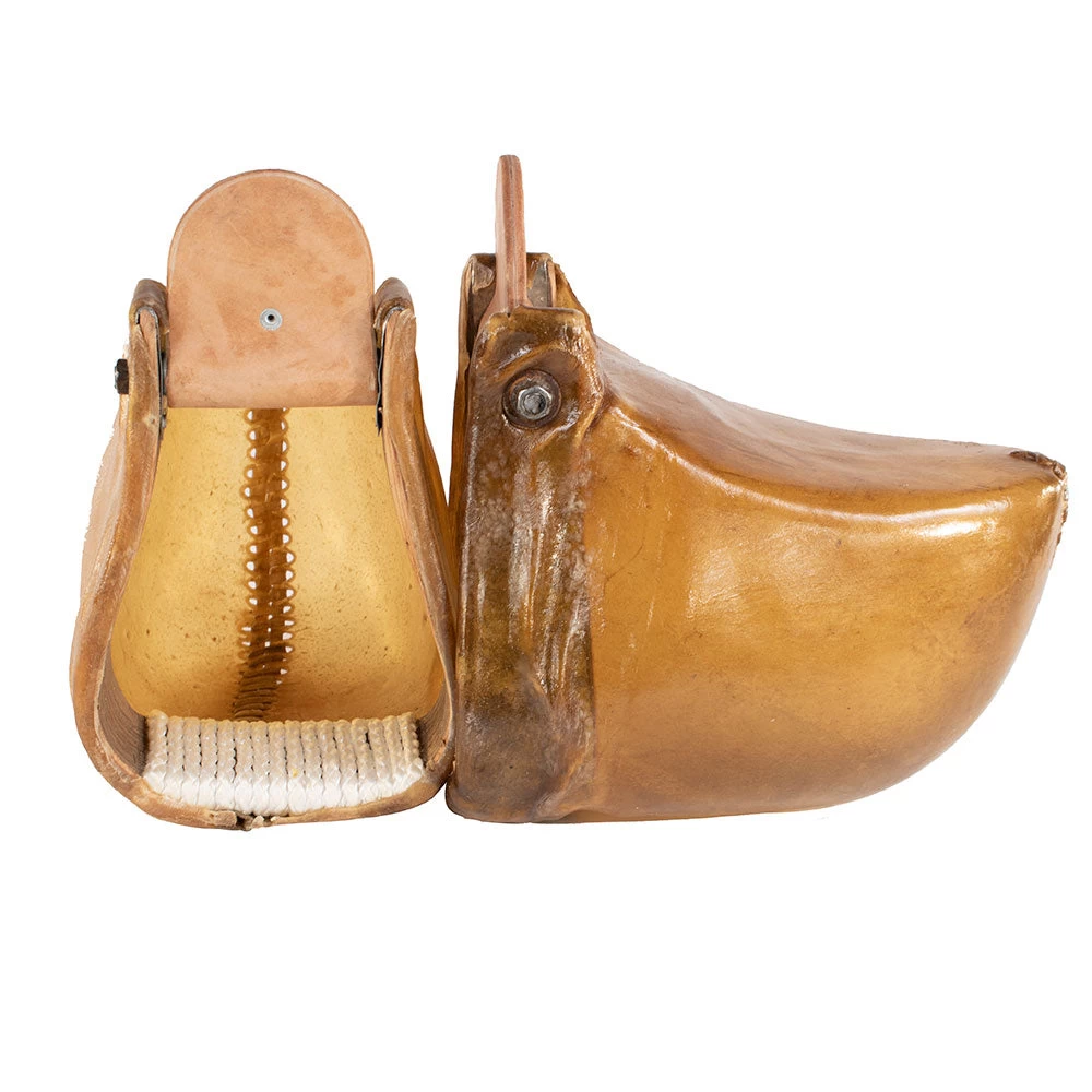 Rawhide tapaderos available in small(child), medium(youth), adult size 2″, adult size 3.”