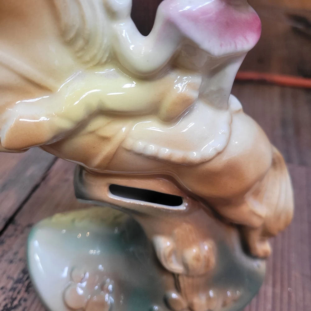 Roy Rogers riding Trigger ceramic piggy bank, has no bottom stopper. Dating from the 1950’s.