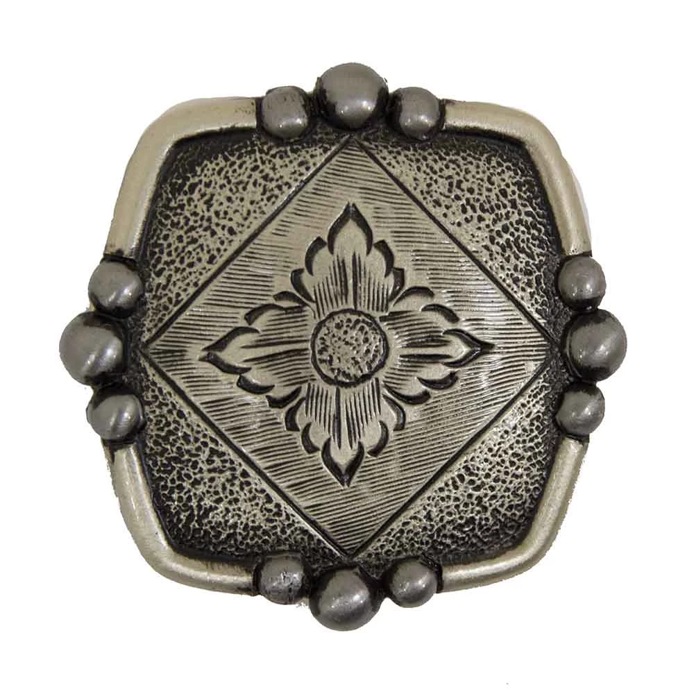 Rustic flower concho available in 1″ and 1 1/2″.
