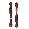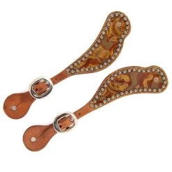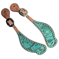 Harness leather, floral tooling, Antiqued or silver metal dots