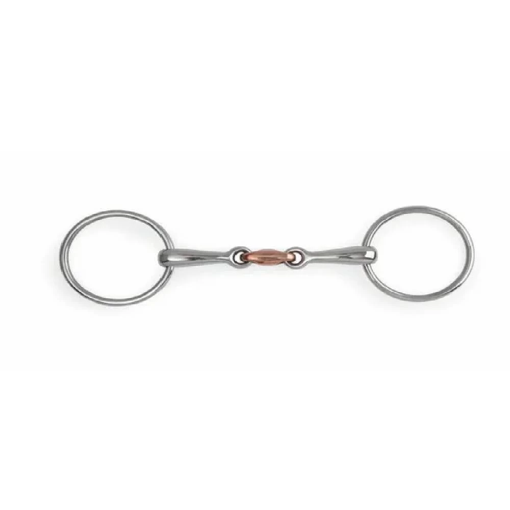 The loose rings discourage the horse from leaning on the bit whilst the lozenge softens the contact and the copper helps encourage mouthing.