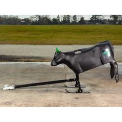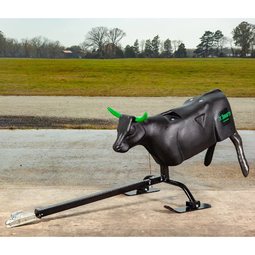 Developed by 4x World Champion Allen Bach, the Smarty was based off of a 425-lb Corriente Steer and is designed with a realistic corner to ensure you’re in the perfect position every time. Dallying feels just like live cattle in the sense that the legs come together when you dally and stretch up to six feet between the tow bar and legs. The LED lights on the back of the legs are a feature that was designed to help heelers see when the legs are at the highest point of the jump and helps keep their eyes on the target. The legs are also shaped and modeled to feel the same as a live steer. It’s not just a heeling machine, with the realistic head design and size this is also a headers go to machine. The turn loose horns make it easy to rope with just two people.