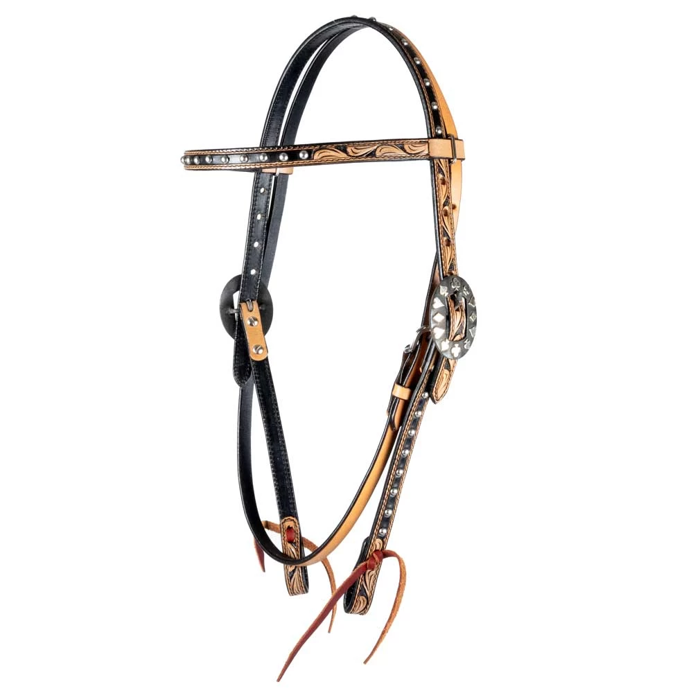 Teskey’s Black & Natural Colored Leather Browband Headstall with Card Suite Buckles on each side and Silver Dots.