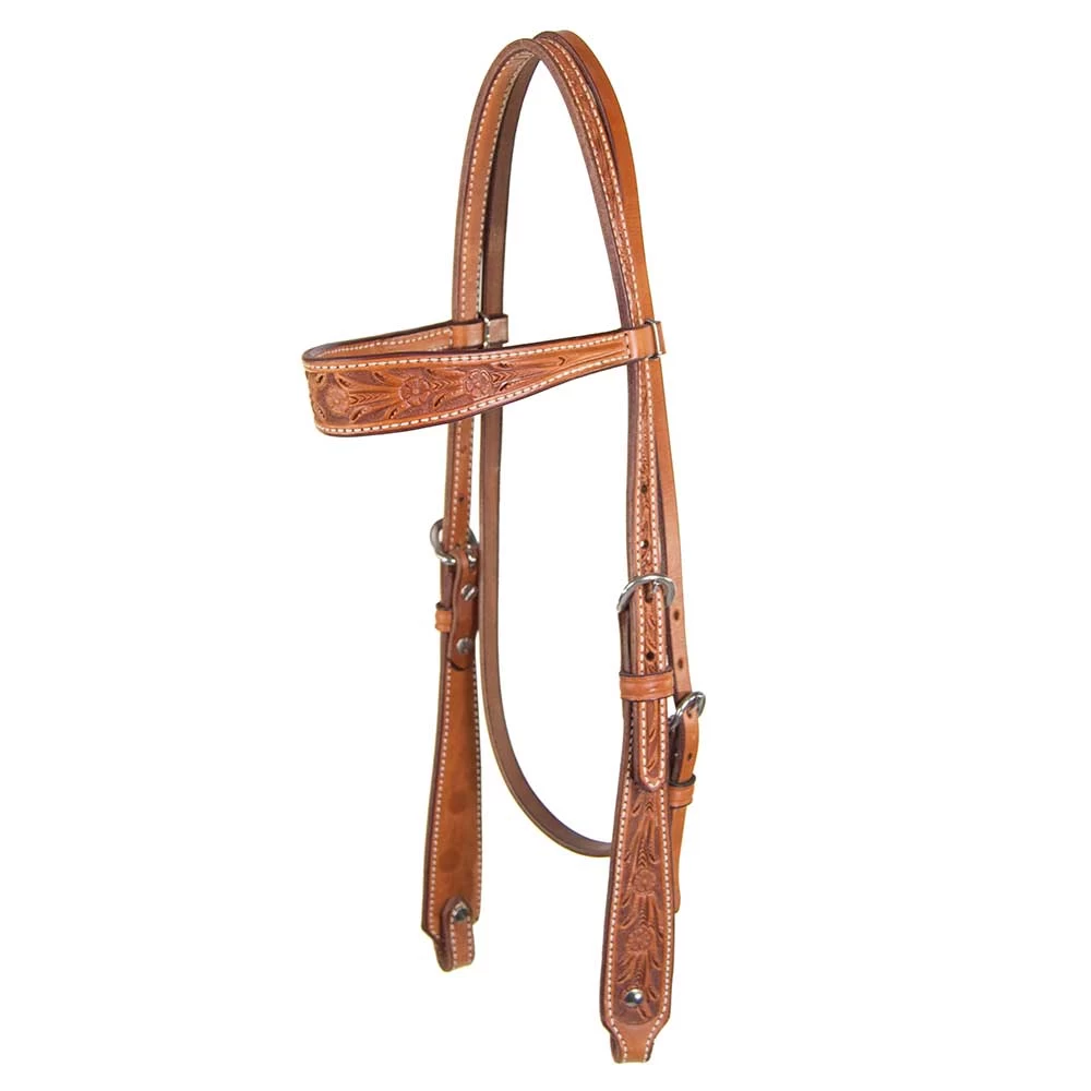 Floral Tooled with Nickel Plated Hardware. 1-1/2″ tapered to 5/8″.