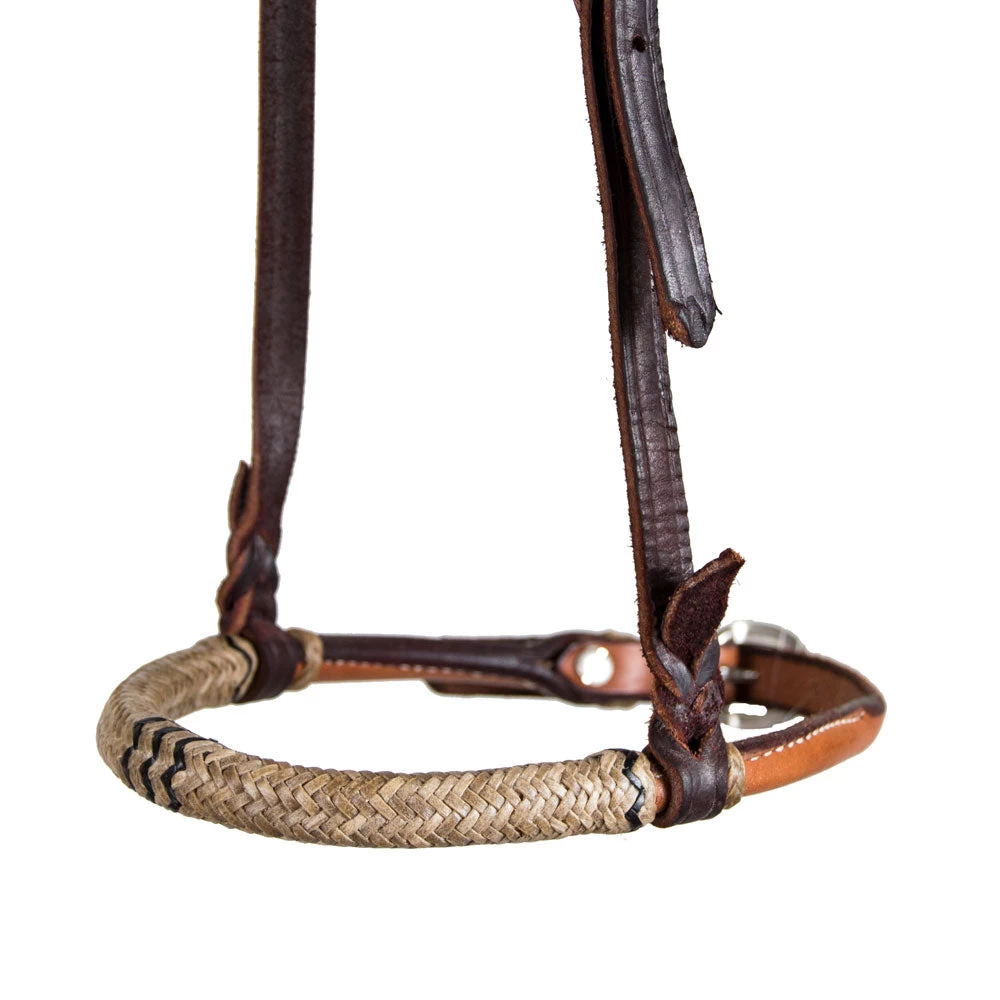 Teskey’s harness heavy oil cavesson accented with rawhide on the nosepiece, rolled leather, and stainless steel hardware.