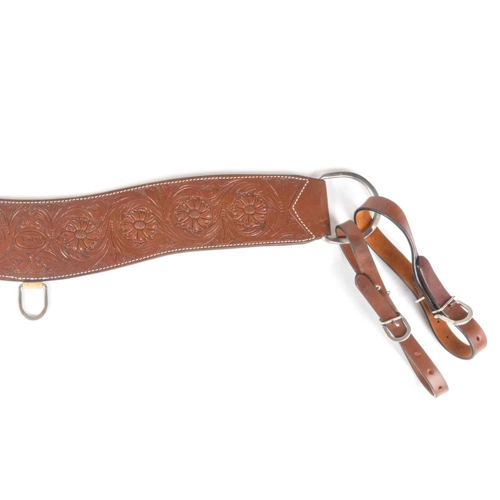 Teskey’s Leather Tripping Collar with Floral Tooling features white stitching and dark edging. This is a standout piece that would compliment any horse. Available in Chestnut.