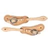 Shaped harness leather spur straps with turquoise gator print and 1/4″ silver spots