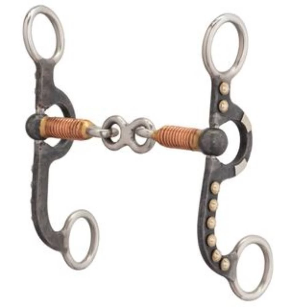 3-Piece dogbone mouth, copper wire wrapped bars, Argentine cheeks. Offers leverage and control. Great for beginners, trail rides, training, and performance. Modern buffed black finish with german silver accents.