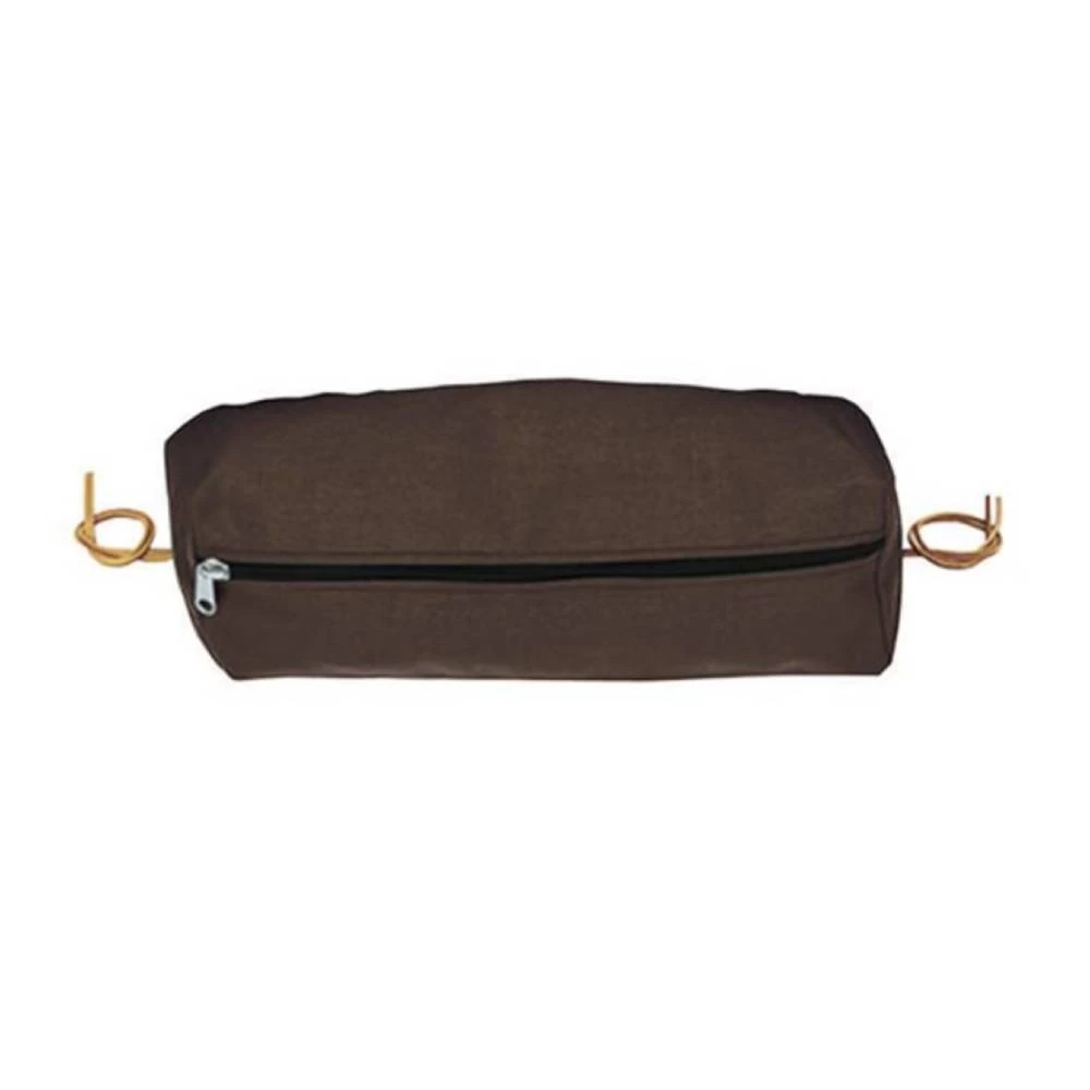 Great for extra lead ropes, rain gear and more. Quickly attach to the saddle with sewn-in dees and tie strings. Nickel plated hardware.